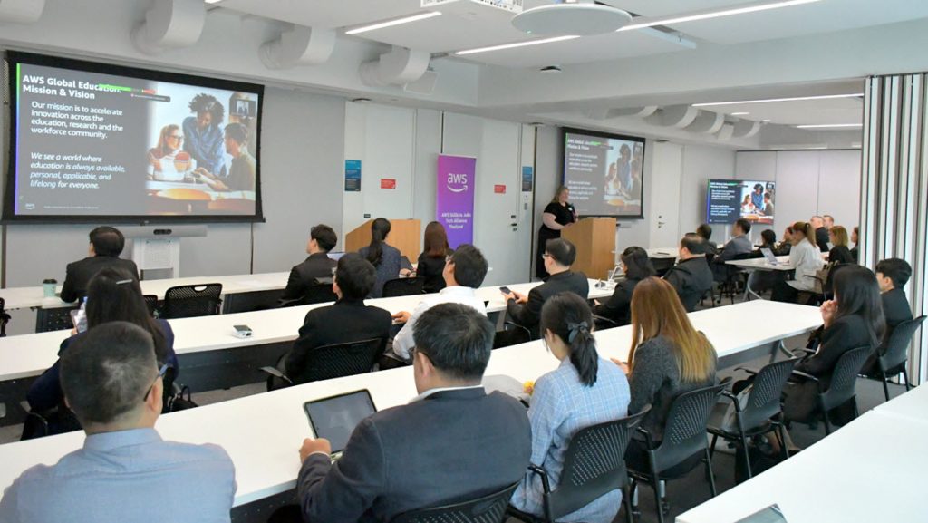 วันที่ 3 พ.ย. 68 รองศาสตราจารย์ ดร.ดวงพร ภู่ผะกา อธิการบดี มอบหมายให้อาจารย์ ดร.ธรรมรัตน์ สิมะโรจนา ผู้อำนวยการสำนักงานส่งเสริมวิชาการและงานทะเบียน พร้อมด้วยอาจารย์ธนธัช มั่นมงคล รองคณบดีคณะเทคโนโลยีอุตสาหกรรม เข้าร่วมการประชุมหารือการกําหนดรูปร่างแรงงานด้านเทคโนโลยีของประเทศไทย:การสนทนาระหว่างอุตสาหกรรมและสถาบันการศึกษา 2025 (Shaping Thailand’s Tech Workforce: Industry-Academia Dialogue 2025) ณ Amazon Web Services Bangkok Office อาคารสิงห์คอมเพล็กซ์ ชั้น 16 ถนนเพชรบุรีตัดใหม่ กรุงเทพฯ