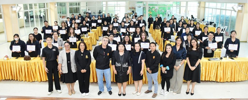 วันที่ 27 พ.ย. 68 เวลา 15.00 น. ผู้ช่วยศาสตราจารย์ ดร.พิภัทรา สิมะโรจนา รองอธิการบดี เป็นประธานในพิธีมอบประกาศนียบัตร แก่ผู้เข้าร่วมการอบรมเชิงปฏิบัติการ “การพัฒนาสื่อส่งเสริมการเรียนรู้ ตามแนวคิด STEAM for BCG Model และเทคโนโลยี AI” สำหรับครู สังกัดสำนักงานส่งเสริมการเรียนรู้ประจำจังหวัดฉะเชิงเทรา ณ ห้องเจ้าพระยา ชั้น 3 อาคารบัณฑิตศึกษา มหาวิทยาลัยราชภัฏราชนครินทร์