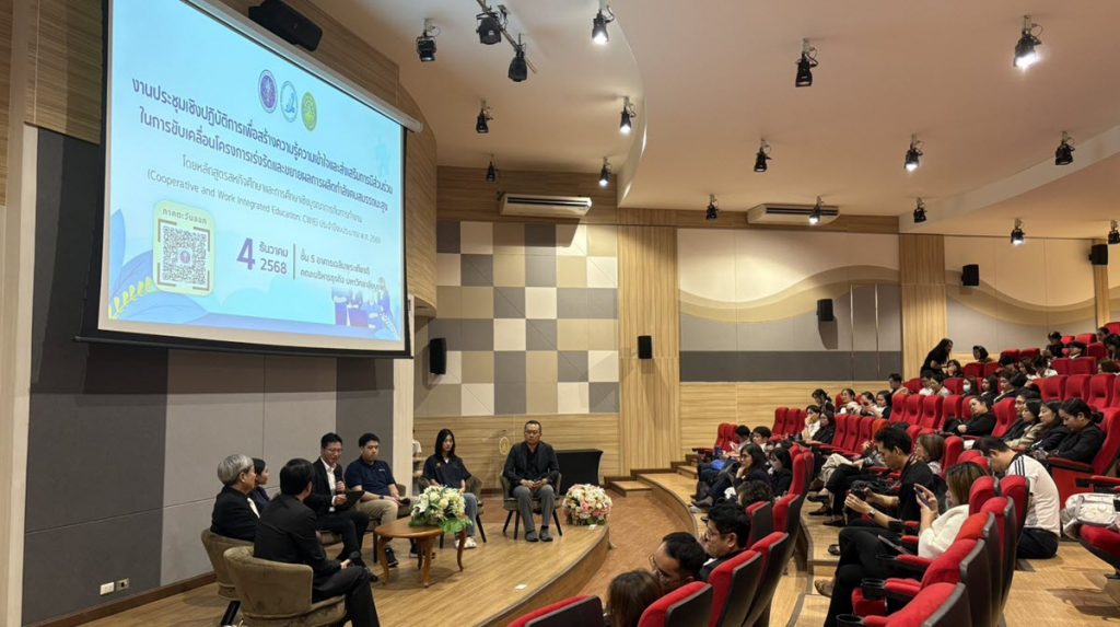 วันที่ 4 ธ.ค. 68 เวลา 09.00 น. รองศาสตราจารย์ ดร.ดวงพร ภู่ผะกา อธิการบดี มอบหมายให้สำนักส่งเสริมวิชาการและงานทะเบียน ร่วมด้วยผู้บริหารทั้ง 6 คณะ เข้าร่วมการประชุมเชิงปฏิบัติการเพื่อสร้างความรู้ความเข้าใจและส่งเสริมการมีส่วนร่วมในการขับเคลื่อนโครงการเร่งรัดและขยายผลการผลิตกำลังคนสมรรถนะสูง โดยหลักสูตรสหกิจศึกษาและการศึกษาเชิงบูรณาการกับการทำงาน (Cooperative and Work Integrated Education: CWIE) ประจำปีงบประมาณ พ.ศ. 2569 ณ ห้อง Meeting A-B (ห้องประชุม) ชั้น 5 อาคารเฉลิมพระเกียรติ คณะบริหารธุรกิจมหาวิทยาลัยบูรพา จังหวัดชลบุรี