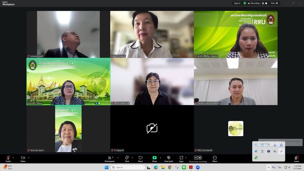 วันที่ 7 ม.ค. 69 เวลา 13.30 น. ดร.สีลาภรณ์ บัวสาย กรรมการสภามหาวิทยาลัยผู้ทรงคุณวุฒิ เป็นประธานการประชุมคณะกรรมการสรรหาผู้อำนวยการสถาบันวิจัยและพัฒนา ครั้งที่ 1/2569 เพื่อพิจารณาตรวจสอบคุณสมบัติของผู้สมัครและผู้ได้รับการเสนอชื่อ เพื่อเข้ารับการสรรหาให้ดำรงตำแหน่งผู้อำนวยการสถาบันวิจัยและพัฒนา ผ่านสื่ออิเล็กทรอนิกส์ออนไลน์ (โปรแกรม ZOOM) และที่ห้องประชุมสำนักงานสภามหาวิทยาลัย ชั้น 4 อาคารราชนครินทร์