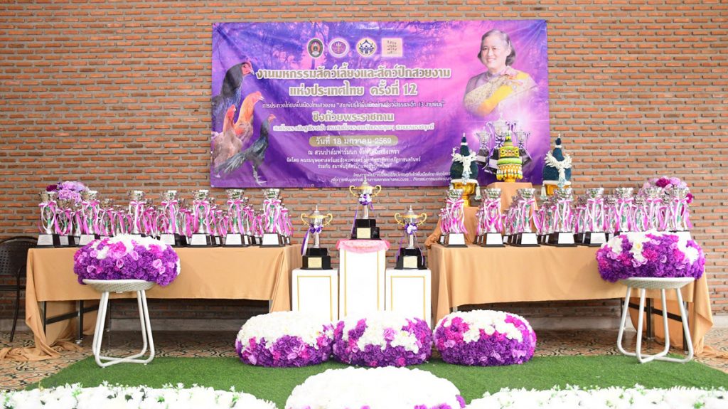วันที่ 18 ม.ค. 69 เวลา 10.00 น. รองศาสตราจารย์สราวุธ โรจนศิริ รองคณบดีวิชาการและวิจัย คณะมนุษยศาสตร์และสังคมศาสตร์ มหาวิทยาลัยราชภัฏราชนครินทร์ เป็นประธานในพิธีเปิดงาน มหกรรมสัตว์ปีกและสัตว์เลี้ยงสวยงาม เฉลิมพระเกียรติ ครั้งที่ 12 ชิงถ้วยพระราชทาน สมเด็จพระกนิษฐาธิราชเจ้า กรมสมเด็จพระเทพรัตราชสุดาฯ สยามบรมราชกุมารี การประกวดไก่ชนพื้นเมืองสวยงาม “สายพันธุ์เขียวโสธร และอีก 13 สายพันธุ์” ภายใต้โครงการพัฒนาคลัสเตอร์สัตว์เศรษฐกิจไก่พื้นเมืองไทย เขียวโสธรเพื่อการเพิ่มมูลค่า กิจกรรมการเผยแพร่องค์ความรู้สู่ชุมชน ซึ่งเป็นความร่วมมือกันระหว่างมหาวิทยาลัยราชภัฏราชนครินทร์ กับสมาพันธุ์สัตว์ปีกแห่งประเทศไทย โดยการประกวดแบ่งเป็น 15 ประเภท ได้แก่