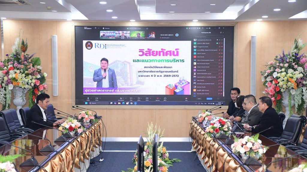 วันที่ 22 ม.ค. 69 เวลา 10.00 น. มหาวิทยาลัยราชภัฏราชนครินทร์ได้มีการนำเสนอวิสัยทัศน์และแนวทางการบริหาร ของผู้เข้ารับการสรรหาเพื่อดำรงตำแหน่งผู้อำนวยการสถาบันวิจัยและพัฒนา โดยผู้ช่วยศาสตราจารย์ ดร.นรากร ศรีสุข มี ดร.สีลาภรณ์ บัวสาย กรรมการสภามหาวิทยาลัยผู้ทรงคุณวุฒิ เป็นประธานกรรมการ พร้อมด้วยคณะกรรมการสรรหาผู้อำนวยการสถาบันวิจัยและพัฒนา คณะผู้บริหาร คณาจารย์และบุคลากรของมหาวิทยาลัย เข้าร่วมรับฟังการนำเสนอวิสัยทัศน์ รวมทั้งนำเสนอประเด็นซักถาม ผ่านระบบออนไลน์ (โปรแกรม Zoom) และที่ห้องเจ้าเสวย ชั้น 4 อาคารราชนครินทร์