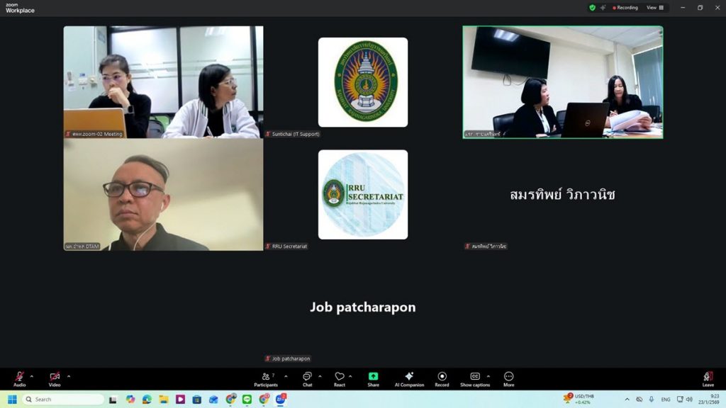 วันที่ 23 ม.ค. 69 เวลา 09.00 น. รองศาสตราจารย์ ดร.ดวงพร ภู่ผะกา อธิการบดี ประชุมหารือเรื่อง Aroma City ร่วมกับกรมการแพทย์ ผ่านระบบออนไลน์ และที่ห้องน้ำผึ้ง ชั้น 5 อาคารเรียนรวมและอำนวยการ