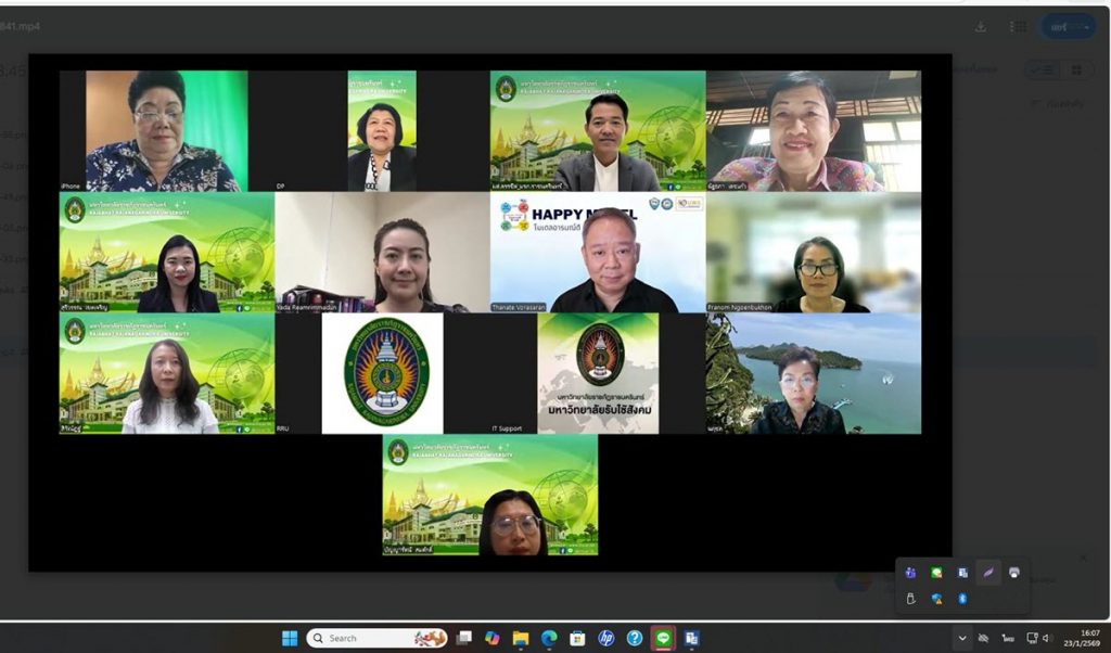 วันที่ 23 ม.ค. 69 เวลา 13.30 น. นางสาวเฟื่องฟ้า เทียนประภาสิทธิ์ กรรมการสภามหาวิทยาลัย ผู้ทรงคุณวุฒิ เป็นประธานการประชุมคณะกรรมการกำกับและเสนอแนะการลงทุนของมหาวิทยาลัย ครั้งที่ 1/2569 ผ่านระบบออนไลน์ (โปรแกรม ZOOM)