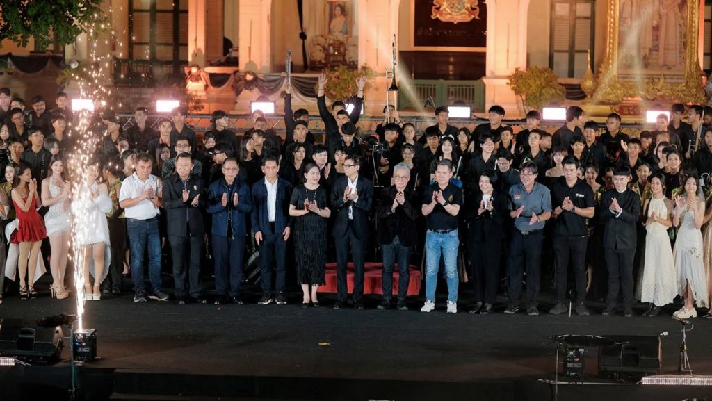 วันที่ 14 ก.พ. 69 เวลา 18.00 น. รองศาสตราจารย์ ดร.ดวงพร ภู่ผะกา อธิการบดีมหาวิทยาลัยราชภัฏราชนครินทร์ พร้อมด้วยผู้ช่วยศาสตราจารย์ครรชิต มาระโภชน์ รองอธิการบดี ผู้ช่วยศาสตราจารย์ ดร.พรทิพย์ อ้นเกษม ผู้อำนวยการสถาบันพัฒนาศักยภาพกำลังคนแห่งอนาคต และอาจารย์สมศักดิ์ ทองแก้ว ผู้อำนวยการศูนย์ศิลปะ วัฒนธรรมและท้องถิ่น ร่วมพิธีเปิดและชมคอนเสิร์ตซิมโฟนีของเด็กและเยาวชนจังหวัดฉะเชิงเทรา “The RIVER Of LOVE” Youth Wind Symphony of Chachoengsao ภายใต้โครงการรณรงค์ป้องกันและแก้ไขปัญหายาเสพติด TO BE NUMBER ONE เทศบาลเมืองฉะเชิงเทรา 2569 กิจกรรม “เก่ง และดี TO BE TBMCCS BAND” ซึ่งเป็นความร่วมมือระหว่างองค์การบริหารส่วนจังหวัดฉะเชิงเทรา เทศบาลเมืองฉะเชิงเทรา กลุ่มผู้ประกอบการ YEC มหาวิทยาลัยราชภัฏราชนครินทร์ และภาคีความร่วมมือ เพื่อเป็นการสร้างภูมิคุ้มกันทางจิตใจให้เข้มแข็ง แสดงออกในทางที่ถูกที่ควร เกิดเป็นทักษะชีวิตเชิงบวกให้สามารถอยู่ในสังคมเสี่ยงได้อย่างปลอดภัยโดยใช้ดนตรีเป็นเครื่องมือ ณ บริเวณสวนสาธารณะ ด้านหน้าอาคารสำนักงานพระคลังข้างที่ จังหวัดฉะเชิงเทรา