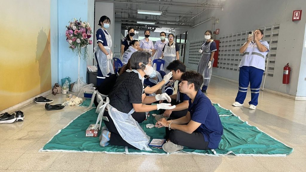 วันที่ 20 กุมภาพันธ์ 2569 เวลา 08.30 น. อาจารย์ณฐ สบายสุข รองคณบดีคณะวิทยาการจัดการ พร้อมด้วย นายพงศกร สวัสดิ์มาก รักษาการในตำแหน่งหัวหน้างานบริการและสวัสดิการนักศึกษา บุคลากร และนักศึกษาสาขาวิชานิเทศศาสตร์ คณะวิทยาการจัดการ มหาวิทยาลัยราชภัฏราชนครินทร์ เข้าร่วมเป็นนักแสดงในการซ้อมแผนรับอุบัติภัยหมู่มาก โดยจำลองสถานการณ์เกิดเหตุจากถังบรรจุน้ำมันระเบิด ณ โรงพยาบาลพุทธโสธร และกองพลทหารราบที่ 11 (ค่ายสมเด็จพระนั่งเกล้า) อำเภอเมืองฉะเชิงเทรา จังหวัดฉะเชิงเทรา