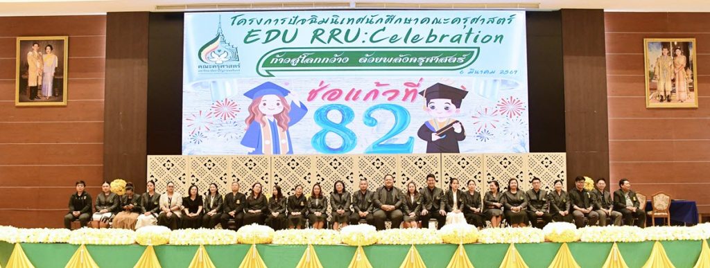 วันที่ 6 มี.ค. 69 เวลา 13.00 น. ผู้ช่วยศาสตราจารย์ ดร.ลินดา นาคโปย คณบดีคณะครุศาสตร์ เป็นประธานในพิธีเปิดงานปัจฉิมนิเทศ EDU RRU : CELEBRATION ก้าวสู่โลกกว้าง ด้วยพลังครุศาสตร์ พร้อมทั้งกล่าวให้โอวาทและบรรยายพิเศษ ในหัวข้อ สู่โลกกว้างด้วยพลังครุศาสตร์ และมอบเกียรติบัตรให้กับนักศึกษาผู้อุทิศตนช่วยเหลือกิจกรรมของคณะครุศาสตร์ และมหาวิทยาลัย ประจำปีการศึกษา 2568 ณ ห้องราชนครินทร์ ชั้น 5 อาคารราชนครินทร์