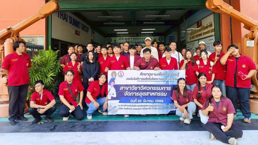วันที่ 30 มีนาคม 2569 ที่ผ่านมา สาขาวิชาวิศวกรรมการจัดการอุตสาหกรรม ได้พานักศึกษาเข้าศึกษาดูงานด้านเทคโนโลยีการผลิตในโรงงานอุตสาหกรรม ณ สถาบันเทคโนโลยีการผลิตสุมิผล นิคมอุตสาหกรรมอมตะซิตี้ระยอง และบริษัท ไทยซัมมิท แหลมฉบัง โอโตพาร์ท จำกัด นิคมอุตสาหกรรมแหลมฉบัง