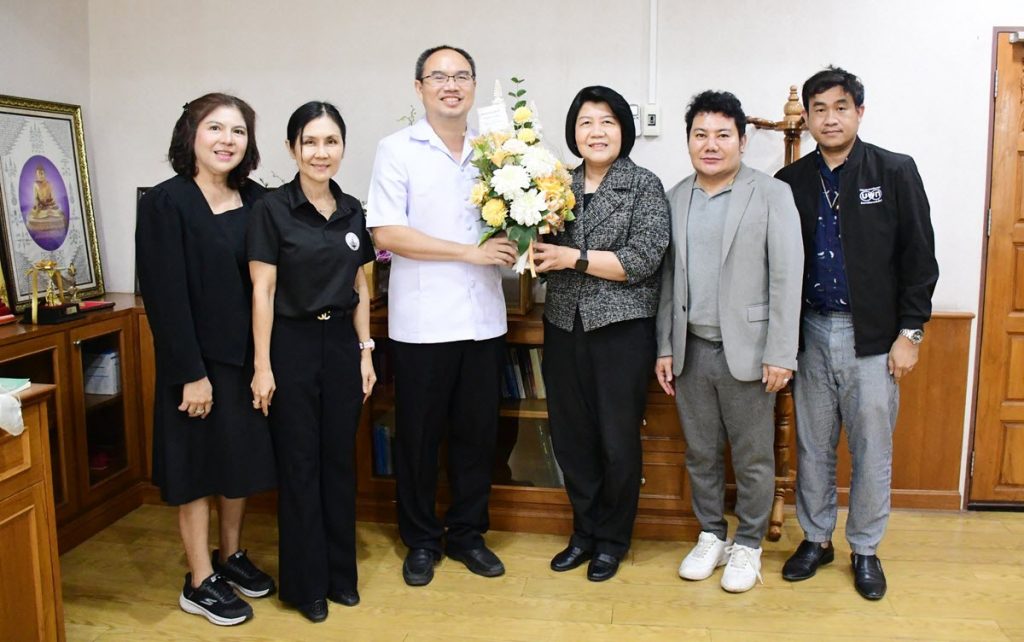 วันที่ 8 เม.ย. 69 เวลา 10.30 น. รองศาสตราจารย์ ดร.ดวงพร ภู่ผะกา อธิการบดี พร้อมด้วยผู้ช่วยศาสตราจารย์ ดร.นรากร ศรีสุข ผู้อำนวยการสถาบันวิจัยและพัฒนา เข้าประชุมหารือแนวทางการขับเคลื่อนจังหวัดสมุนไพรและเมืองอโรม่าซิตี้ ร่วมกับนายธนะวัฒน์ วงศ์ผัน นายแพทย์สาธารณสุขจังหวัดฉะเชิงเทรา และคณะ พร้อมทั้งมอบช่อดอกไม้แสดงความยินดีกับนายธนะวัฒน์ วงศ์ผัน เนื่องในโอกาสเข้ารับตำแหน่งนายแพทย์สาธารณสุขจังหวัดฉะเชิงเทรา ณ สำนักงานสาธารณสุขจังหวัดฉะเชิงเทรา