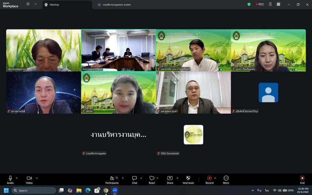 วันที่ 20 เม.ย. 69 เวลา 13.30 น. รองศาสตราจารย์ ดร.วศิน อิงคพัฒนากุล ผู้ทรงคุณวุฒิในสภามหาวิทยาลัย เป็นประธานในการประชุมคณะกรรมการพิจารณากลั่นกรองการต่อเวลาราชการ ครั้งที่ 1/2569 ผ่านระบบสื่ออิเล็กทรอนิกส์ (ระบบออนไลน์) และ ที่ห้องเทพนิมิตร ชั้น 4 อาคารเรียนรวมและอำนวยการ มหาวิทยาลัยราชภัฏราชนครินทร์
