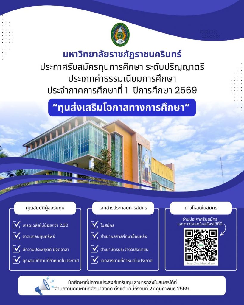 วันที่ 14 ก.พ. 69 เวลา 09.00 น. คณะมนุษยศาสตร์และสังคมศาสตร์ มหาวิทยาลัยราชภัฏราชนครินทร์ จัดโครงการส่งเสริมและพัฒนาคุณภาพชีวิตของประชาชนทุกช่วงวัยให้มีสุขภาพดีทั้งสุขภาวะทางกาย จิตใจ สังคม และปัญญา ตามบันทึกข้อตกลงความร่วมมือระหว่างมหาวิทยาลัยราชภัฏราชนครินทร์ กับ …