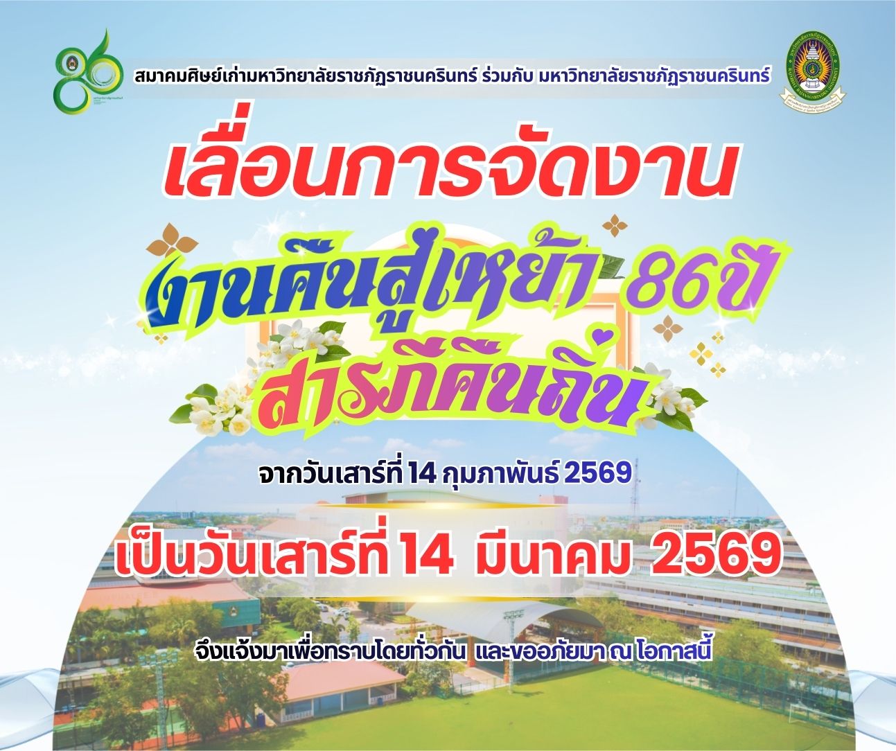วันที่ 14 ก.พ. 69 เวลา 09.00 น. นายสุรัตน์ จรกรรณ นายกสมาคมศิษย์เก่ามหาวิทยาลัยราชภัฏราชนครินทร์ เป็นประธานทอดผ้าป่าเพื่อการศึกษา ณ ห้องศรีสยาม ชั้น 4 …